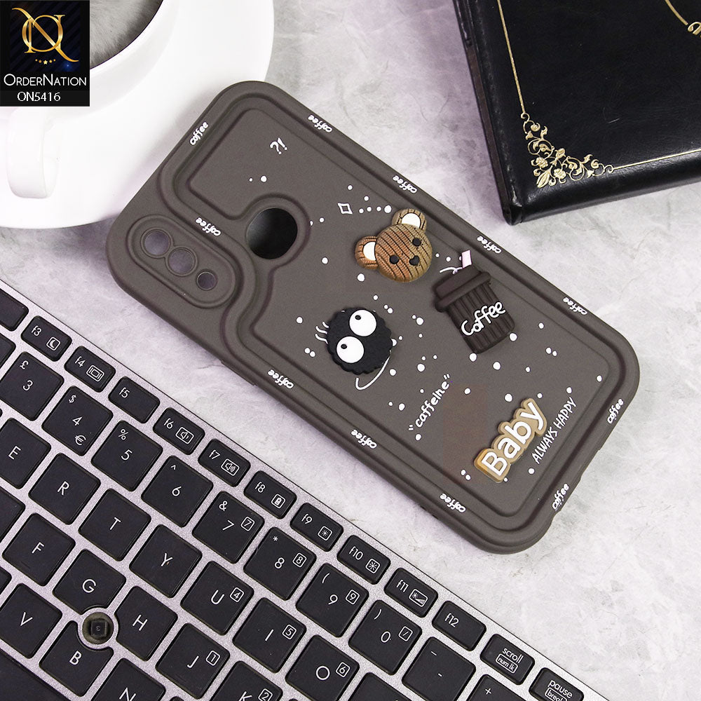 Samsung Galaxy A10s Cover - Brown - Cute 3D Cartoon Coffee Soft Silicon Case With Camera Protection