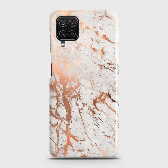 Samsung Galaxy A12 Cover - In Chic Rose Gold Chrome Style Printed Hard Case with Life Time Colors Guarantee