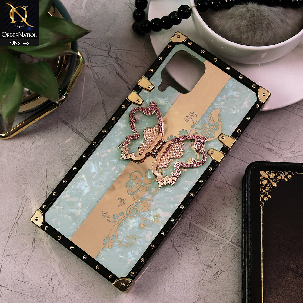 Samsung Galaxy A12 Nacho Cover - Aqua - Luxury Shiny Rhinestone Butterfly Electroplated Square Trunk Soft Case