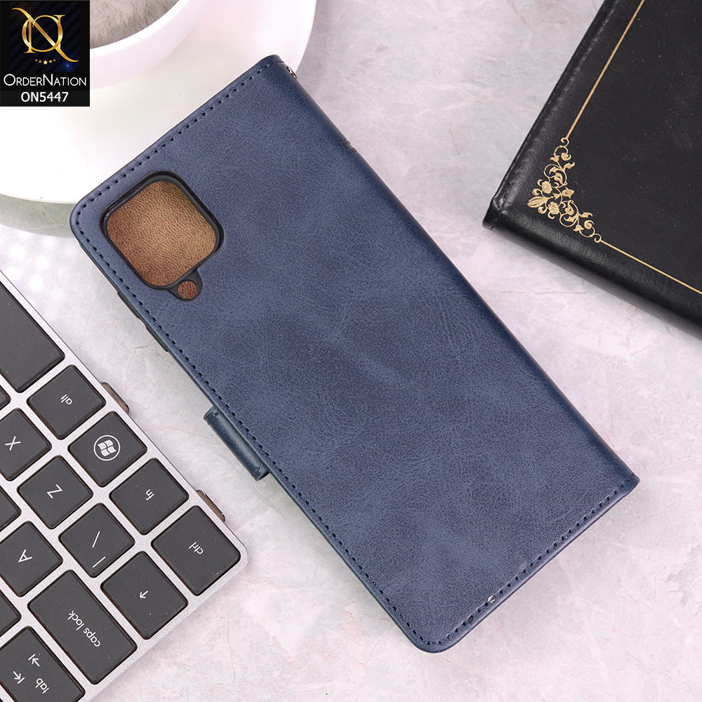 Samsung Galaxy A12 Nacho Cover - Blue - Premium Leather Megantic Flip Book Covers With Card Holding Option