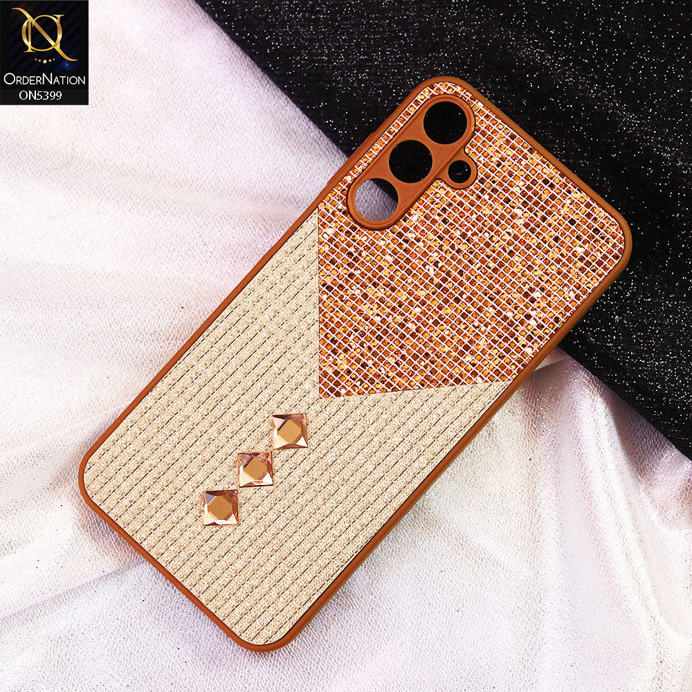 Samsung Galaxy A15 5G Cover - Brown - Luxury 3D Woven Pattern Shiny Soft Case With Camera Protection
