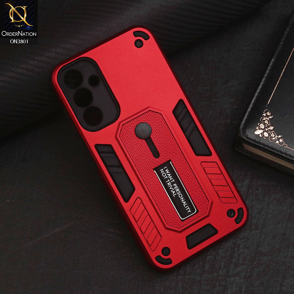 Samsung Galaxy A15 5G Cover - Red - Hybrid Stylish Slide Finger Grip With Metal Kickstand Soft Borders Case