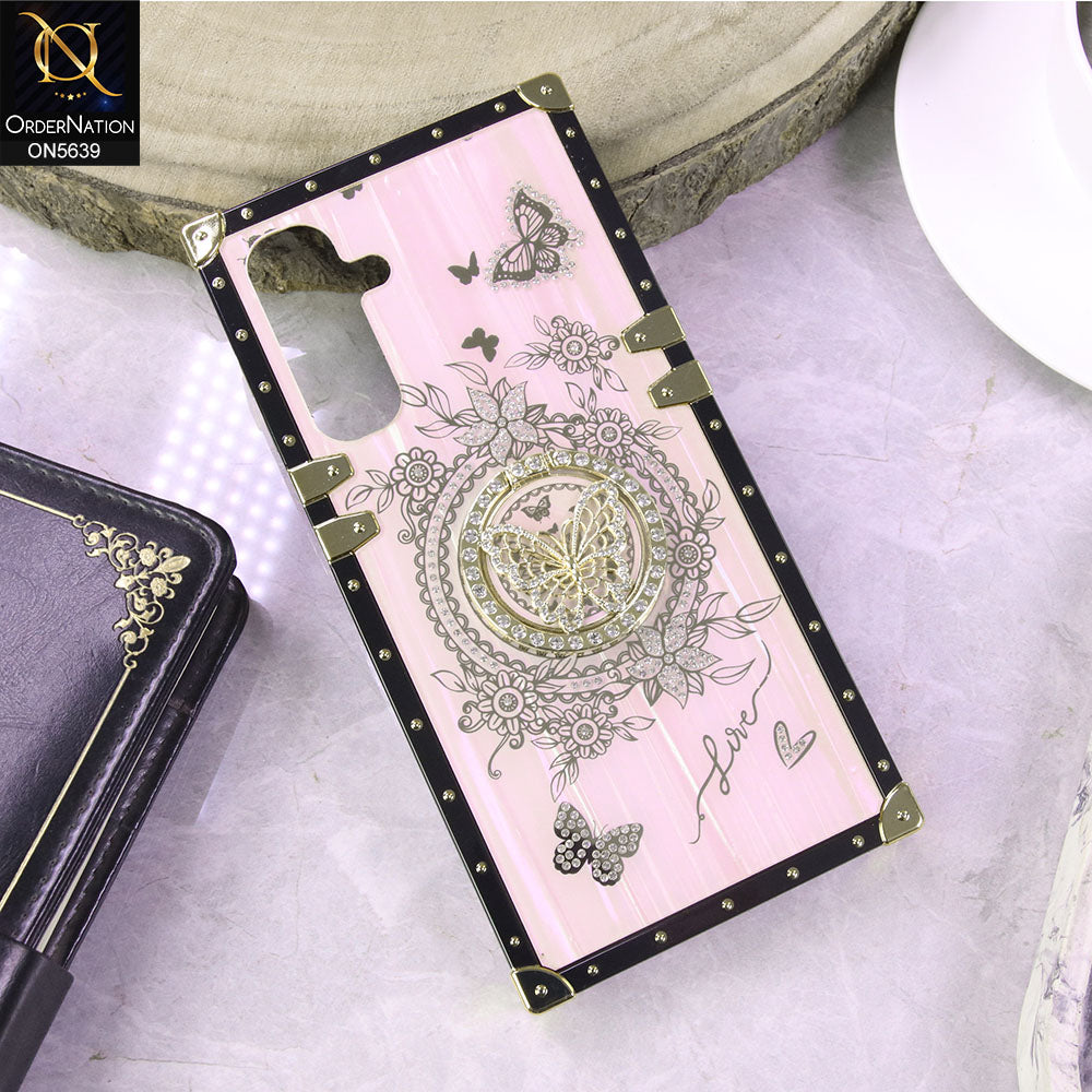 Samsung Galaxy A16 5G Cover - Pink - Square Bling Diamond Glitter Soft TPU Trunk Case with Ring Holder