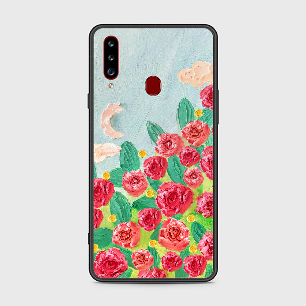 Samsung Galaxy A20s Cover - Floral Series - Design 10 - Red & Green - HQ Ultra Shine Premium Infinity Glass Soft Silicon Borders Case