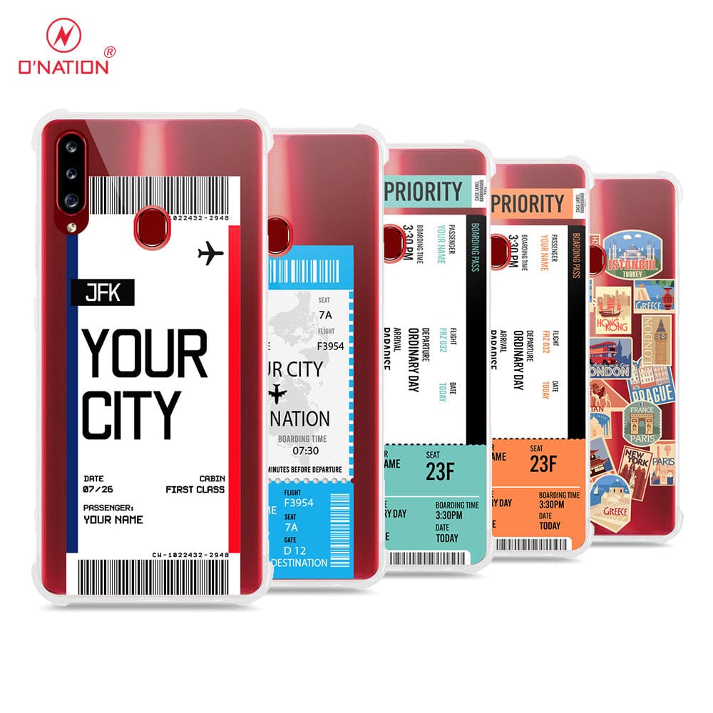 Samsung Galaxy A20s Cover - Personalised Boarding Pass Ticket Series - 5 Designs - Clear Phone Case - Soft Silicon Borders