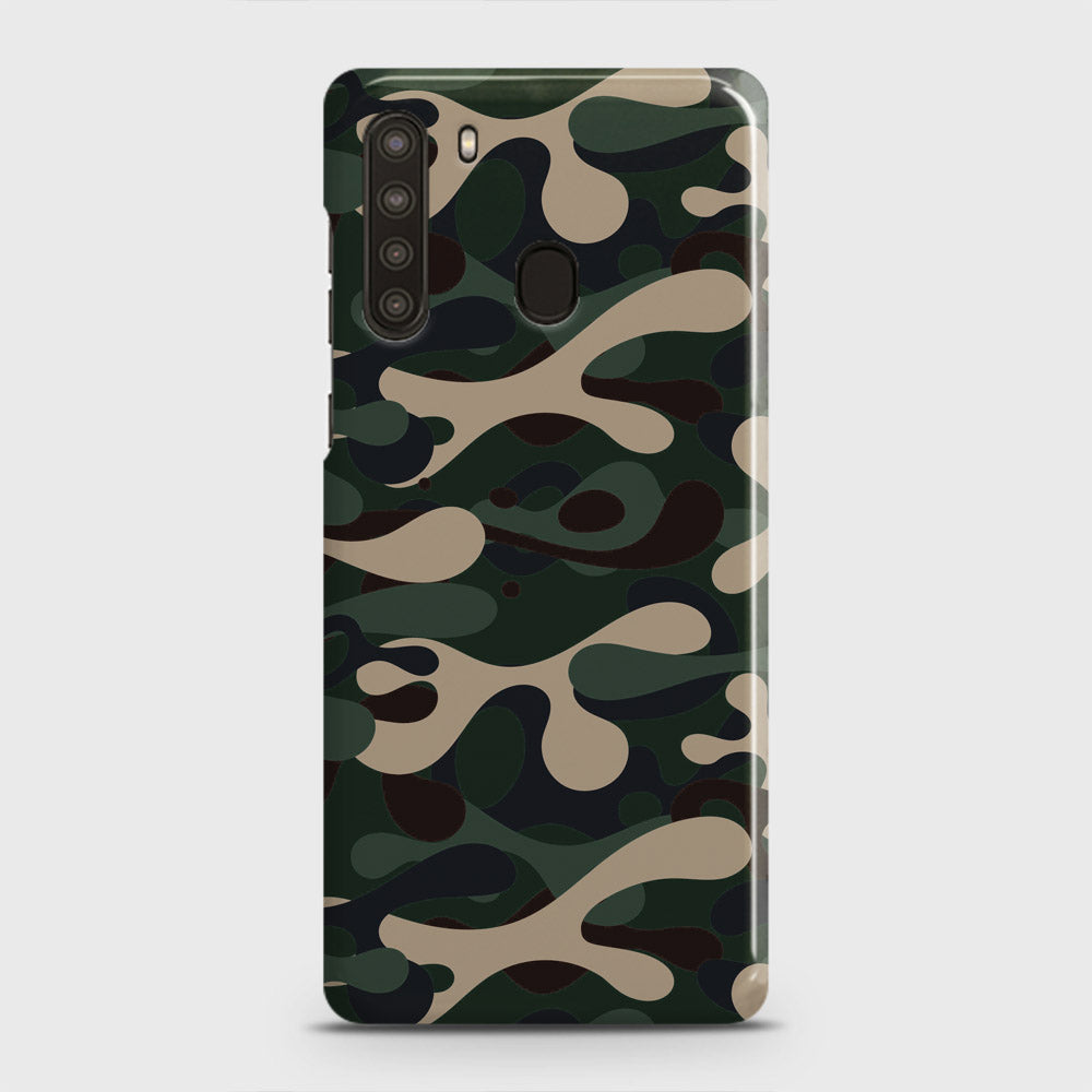 Samsung Galaxy A21 Cover - Camo Series - Dark Green Design - Matte Finish - Snap On Hard Case with LifeTime Colors Guarantee