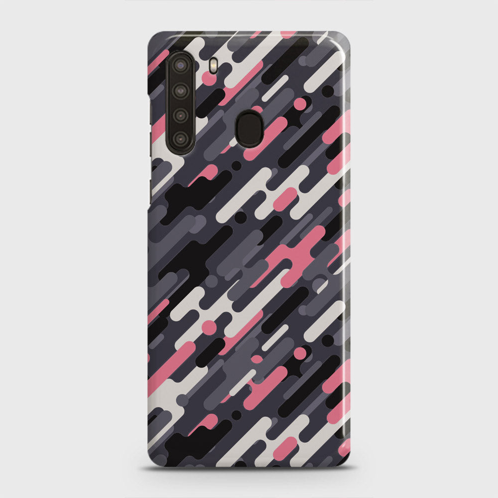 Samsung Galaxy A21 Cover - Camo Series 3 - Pink & Grey Design - Matte Finish - Snap On Hard Case with LifeTime Colors Guarantee