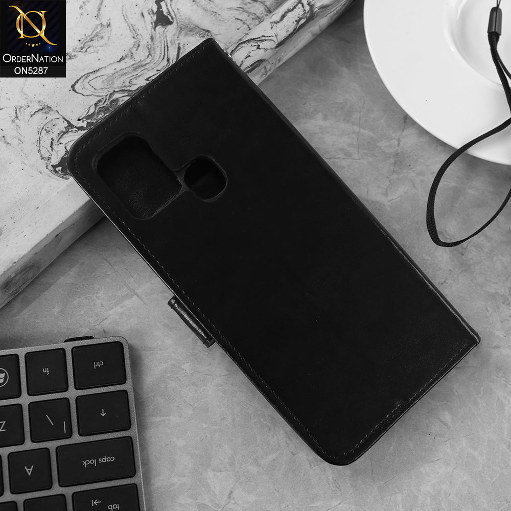 Samsung Galaxy A21s Cover - Black - Premium PU Leather Magnetic Flip Book Card Slots Wallet Soft Case
