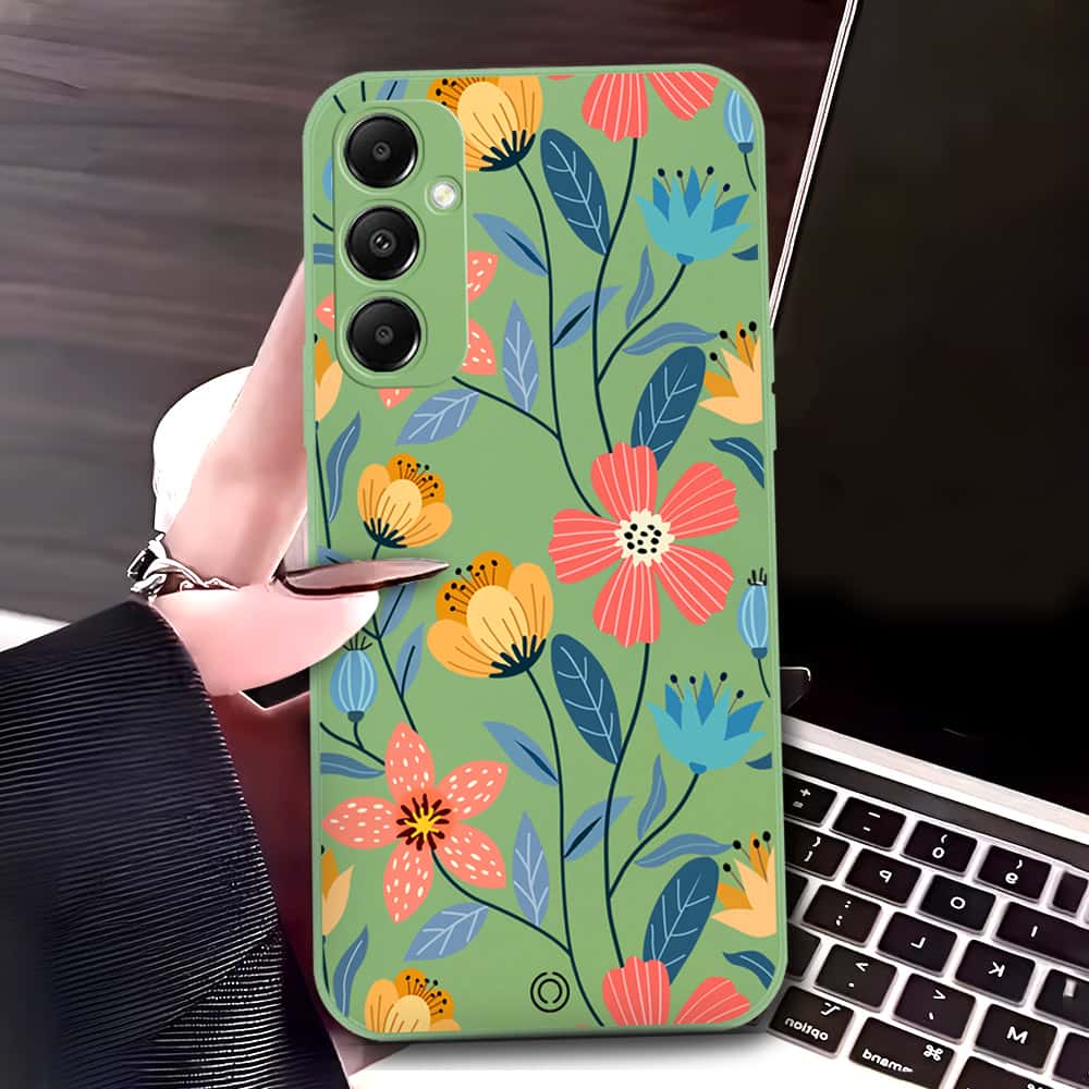 Samsung Galaxy A25 5G Cover - Light Green - D2 - ONation Floral Series - HQ Liquid Silicone Soft Case