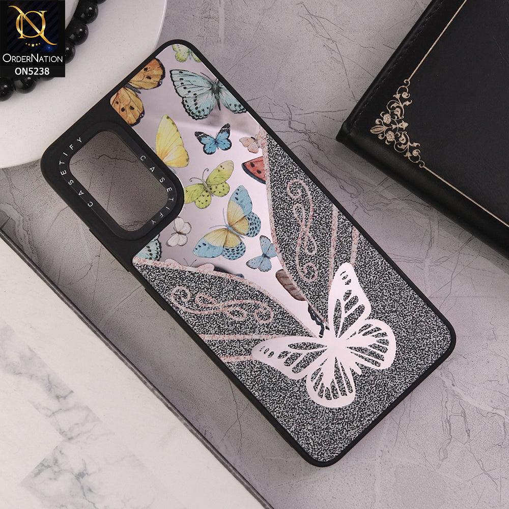 Samsung Galaxy A32 Cover - Design 8 - Trendy Floral Butterfly Shiny Mirror Soft Borders Protective Case