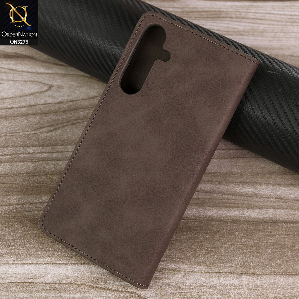 Samsung Galaxy A35 Cover - Dark Brown -  ONation Business Flip Series - Premium Magnetic Leather Wallet Flip book Card Slots Soft Case