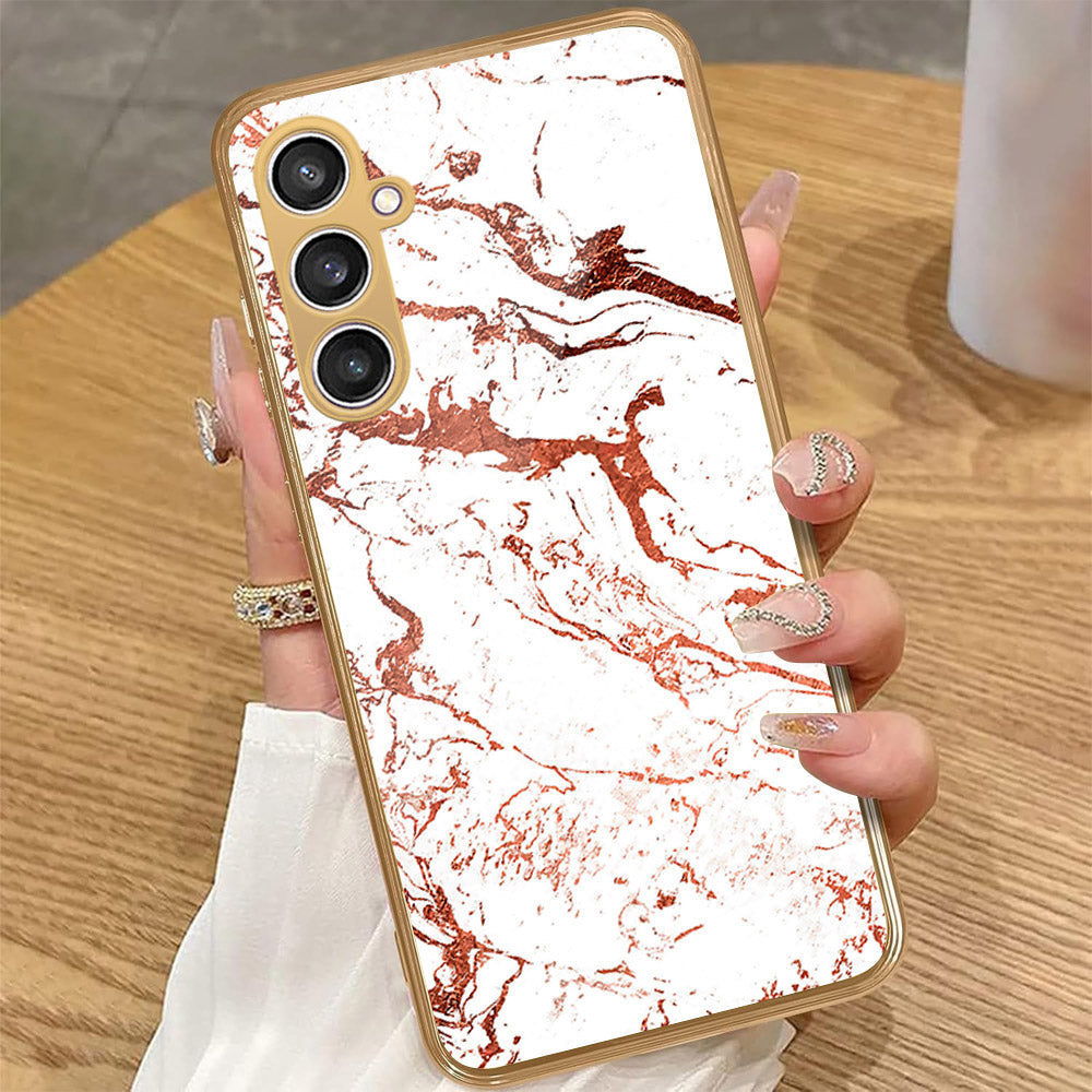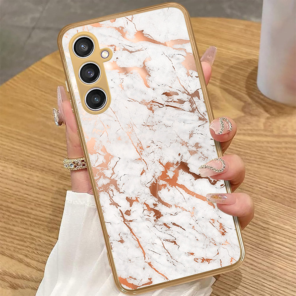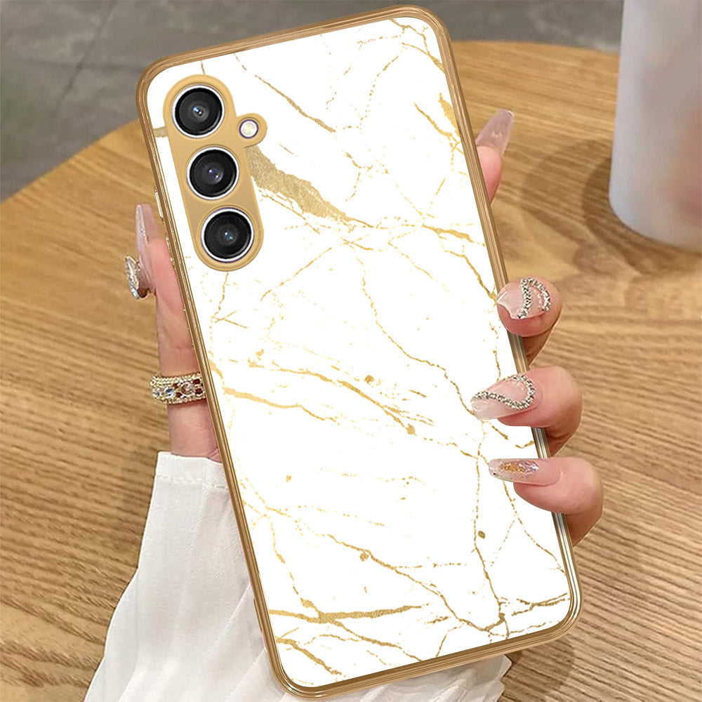 Samsung Galaxy A35 - White Marble Series 2 - HQ Premium Shine Durable Golden Electroplate Case