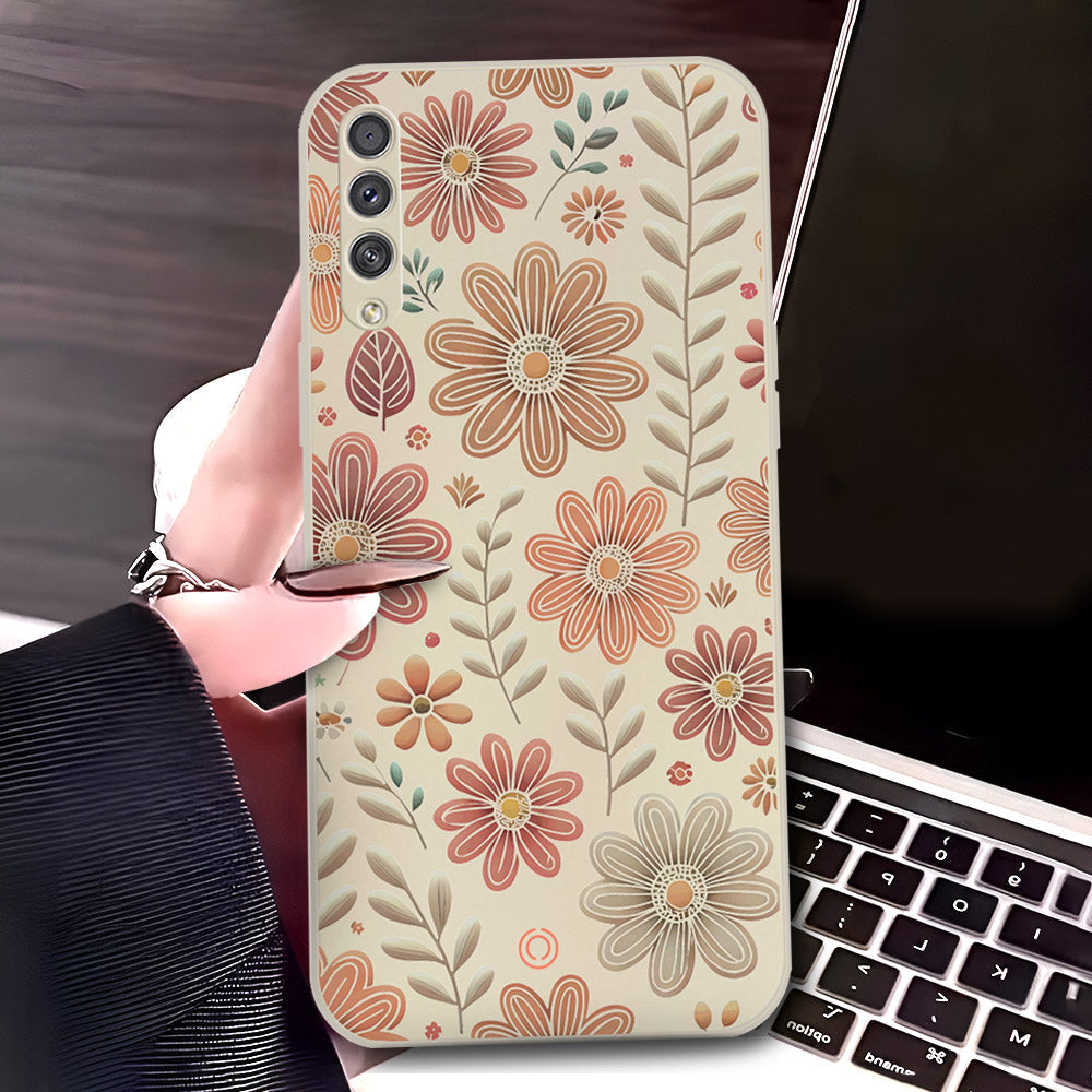 Samsung Galaxy A50 Cover - Off White - D4 - ONation Floral Series - HQ Liquid Silicone Soft Case