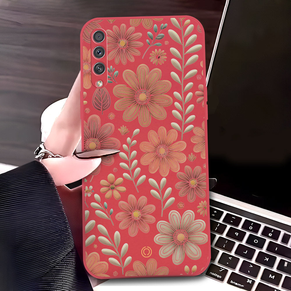 Samsung Galaxy A50 Cover - Red - D4 - ONation Floral Series - HQ Liquid Silicone Soft Case