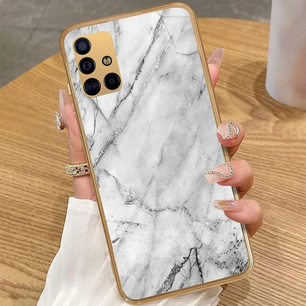 Samsung Galaxy A51 - White Marble Series - HQ Premium Shine Durable Golden Electroplate Case
