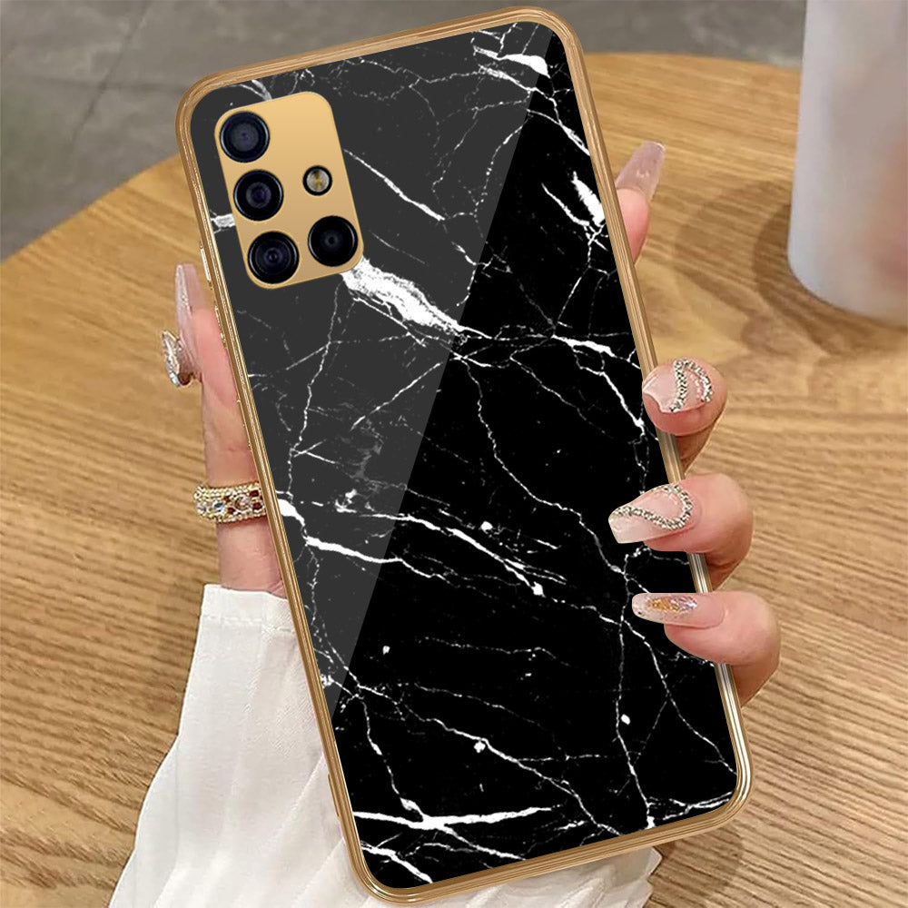 Samsung Galaxy A71 - Black Marble Series - HQ Premium Shine Durable Golden Electroplate Case