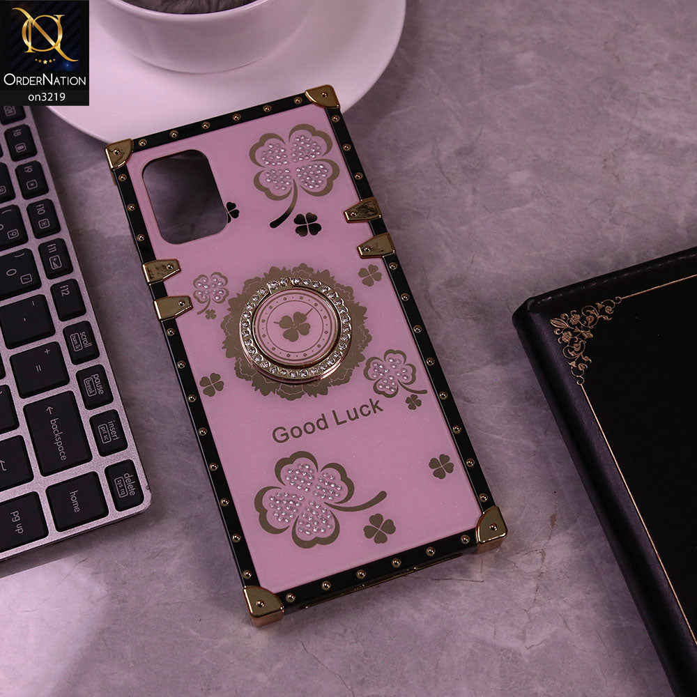 Samsung Galaxy A71 Cover - Pink - Square Bling Diamond Glitter Soft TPU Trunk Case with Ring Holder
