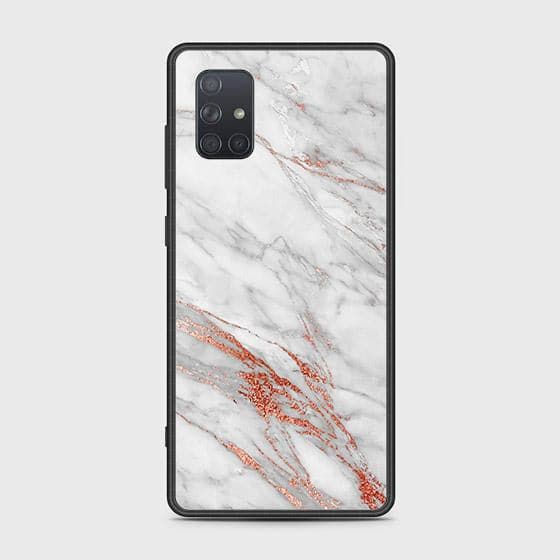 Samsung Galaxy A71 Cover - White Marble Series - HQ Ultra Shine Premium Infinity Glass Soft Silicon Borders Case
