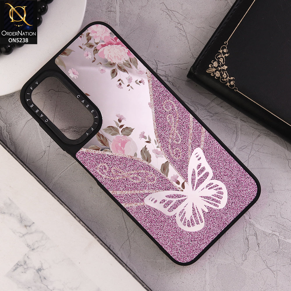 Samsung Galaxy A72 Cover - Design 2 - Trendy Floral Butterfly Shiny Mirror Soft Borders Protective Case