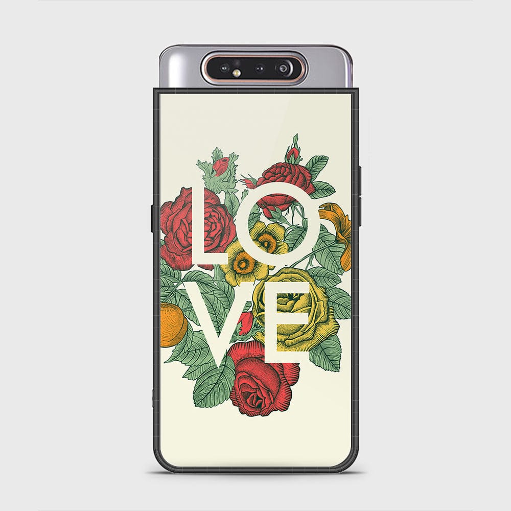 Samsung Galaxy A80 Cover - Floral Series 2 - HQ Ultra Shine Premium Infinity Glass Soft Silicon Borders Case