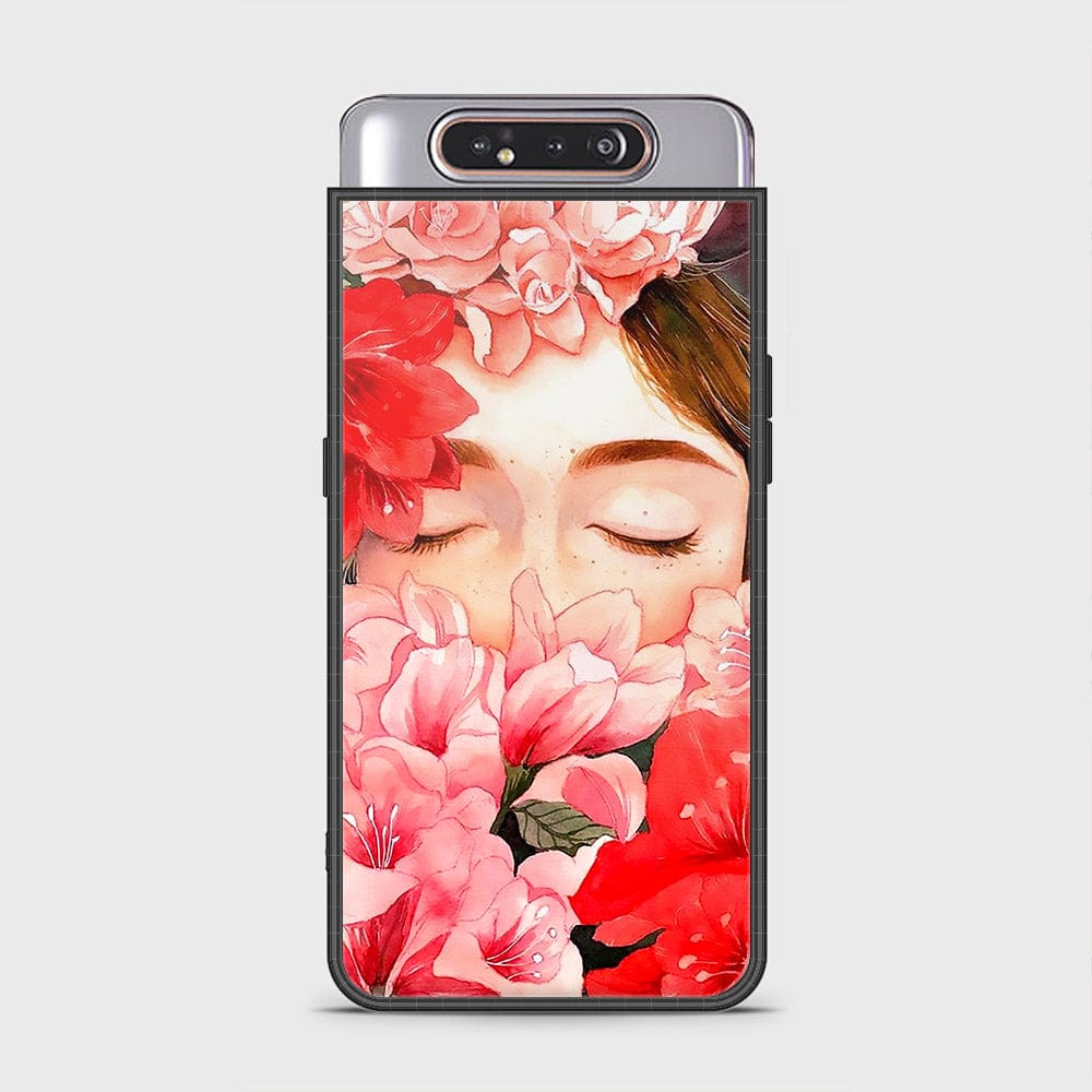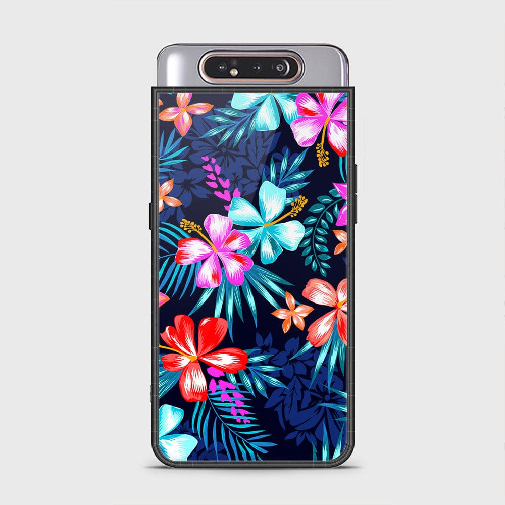 Samsung Galaxy A80 Cover - Floral Series - HQ Ultra Shine Premium Infinity Glass Soft Silicon Borders Case