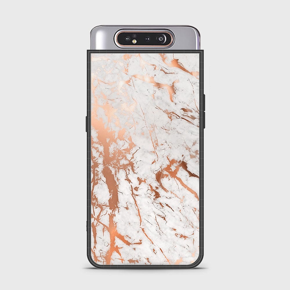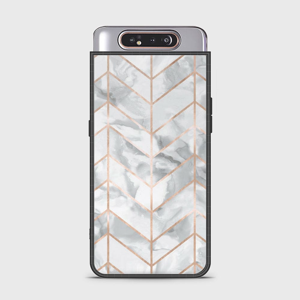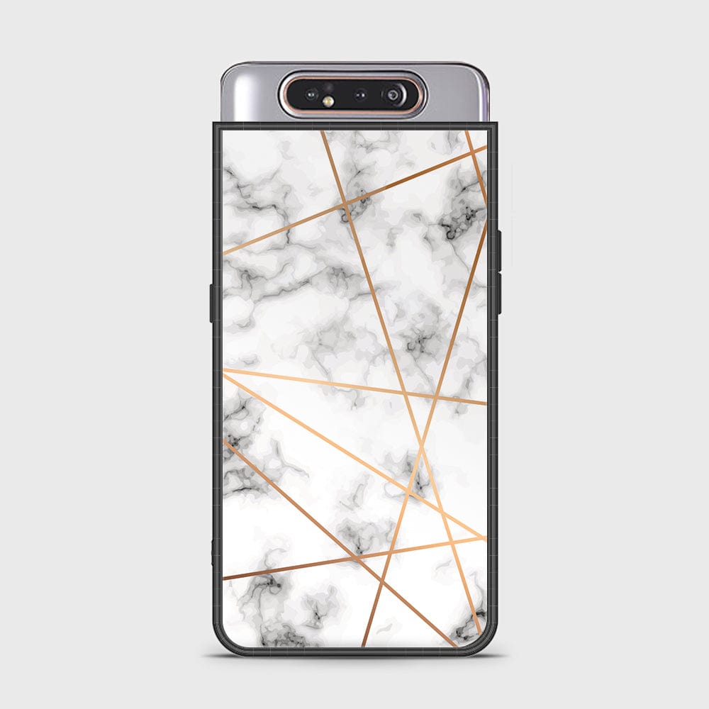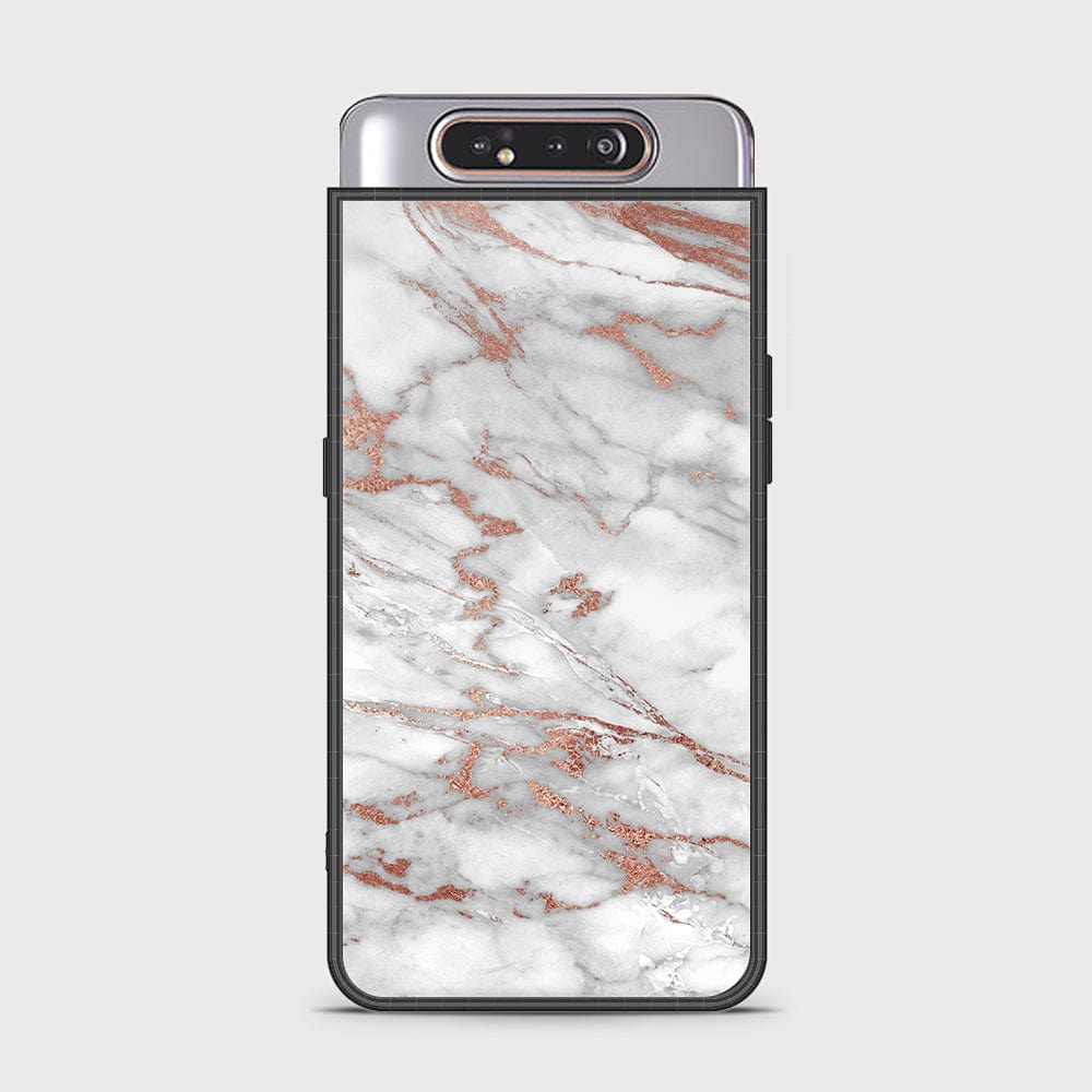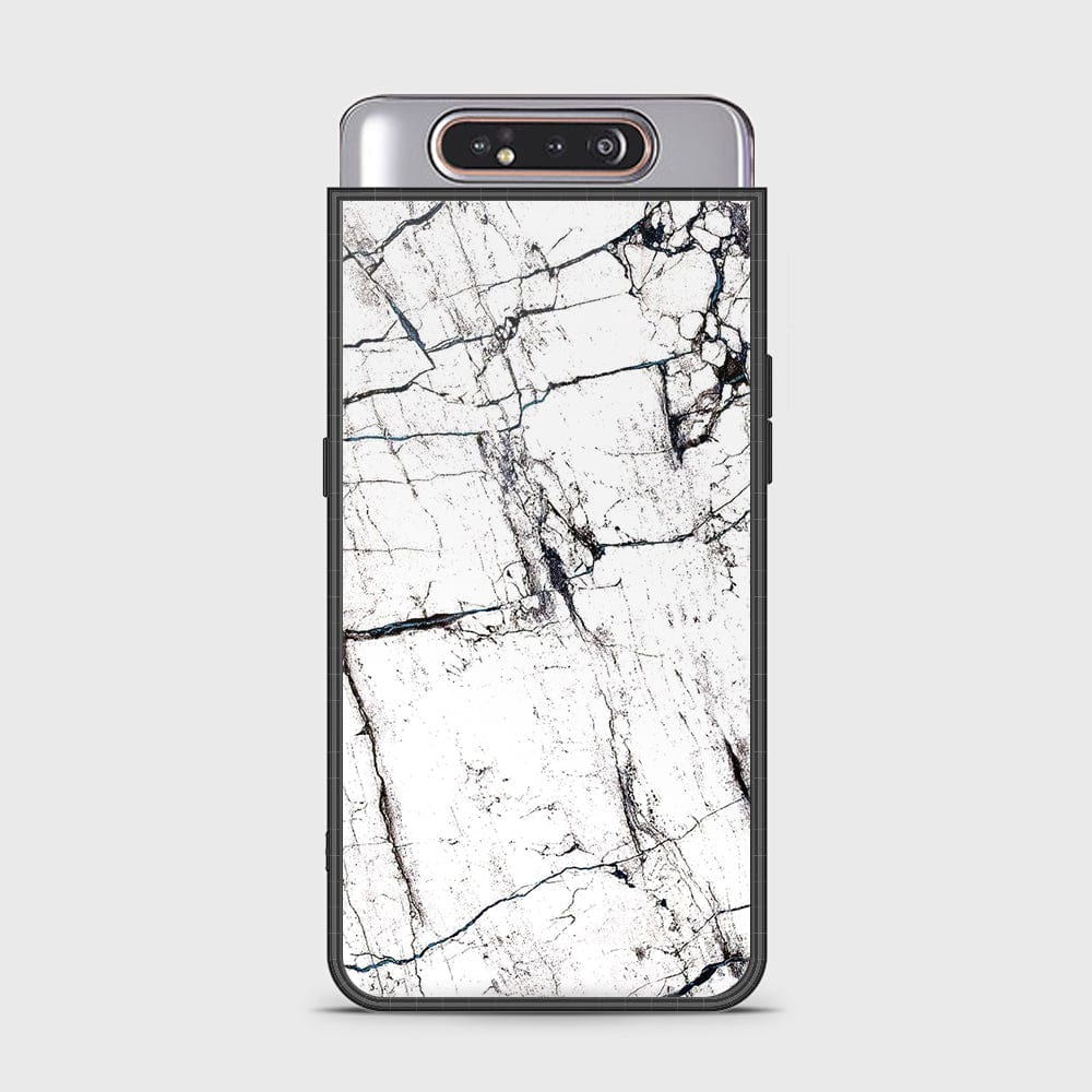 Samsung Galaxy A80 Cover - White Marble Series 2 - HQ Ultra Shine Premium Infinity Glass Soft Silicon Borders Case