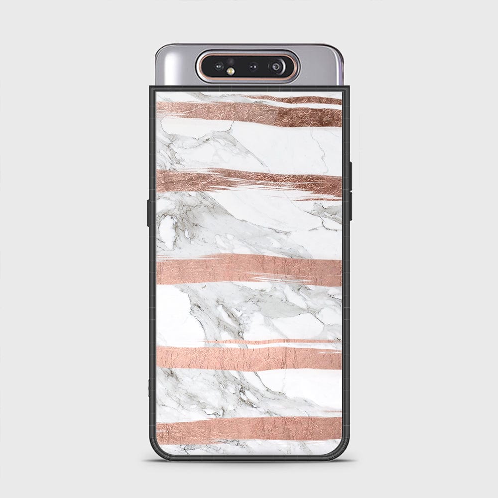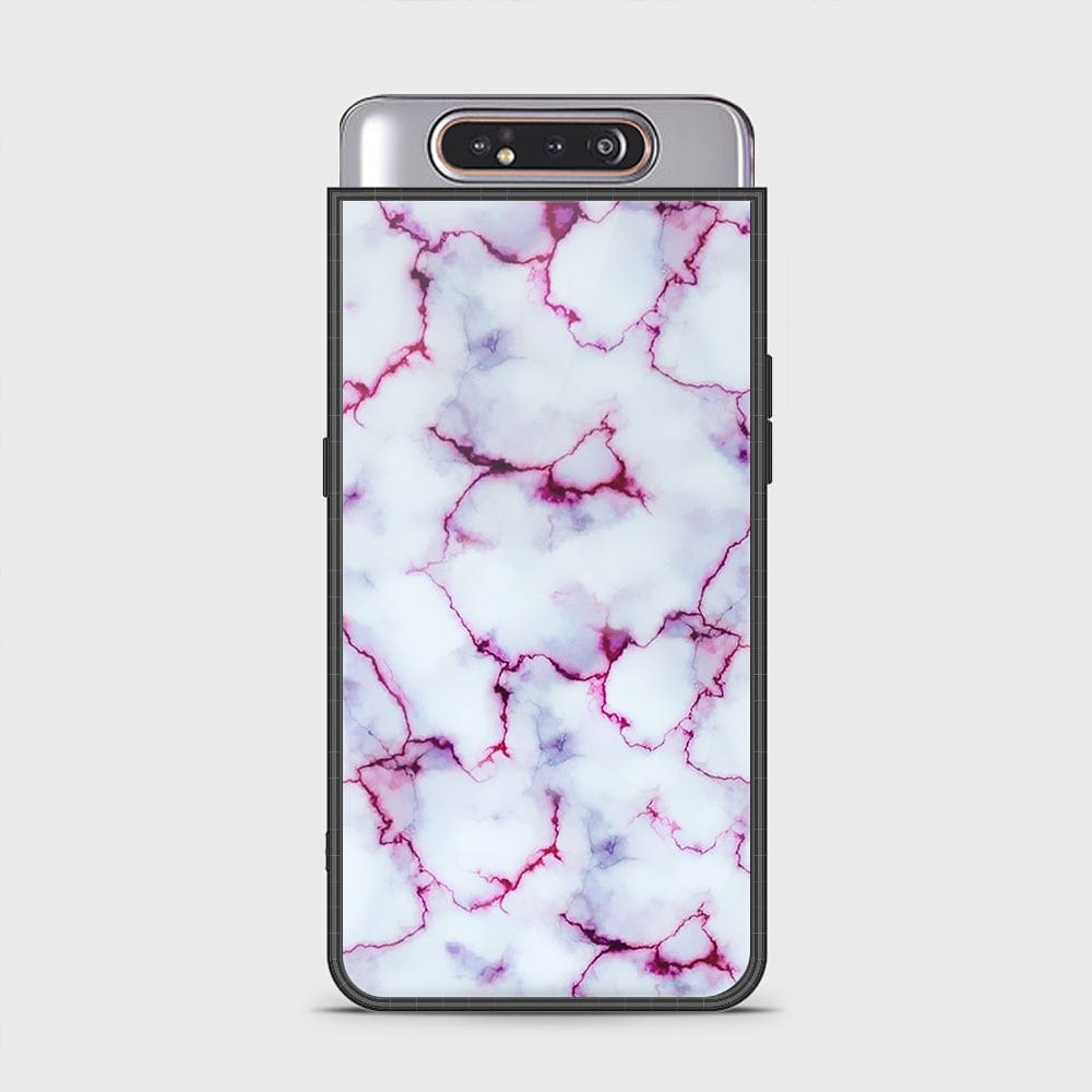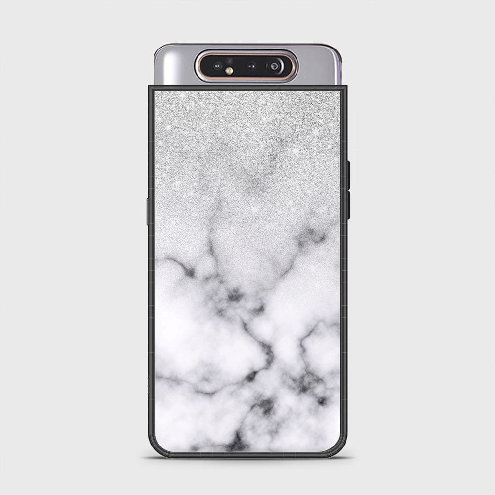 Samsung Galaxy A80 Cover - White Marble Series - HQ Ultra Shine Premium Infinity Glass Soft Silicon Borders Case