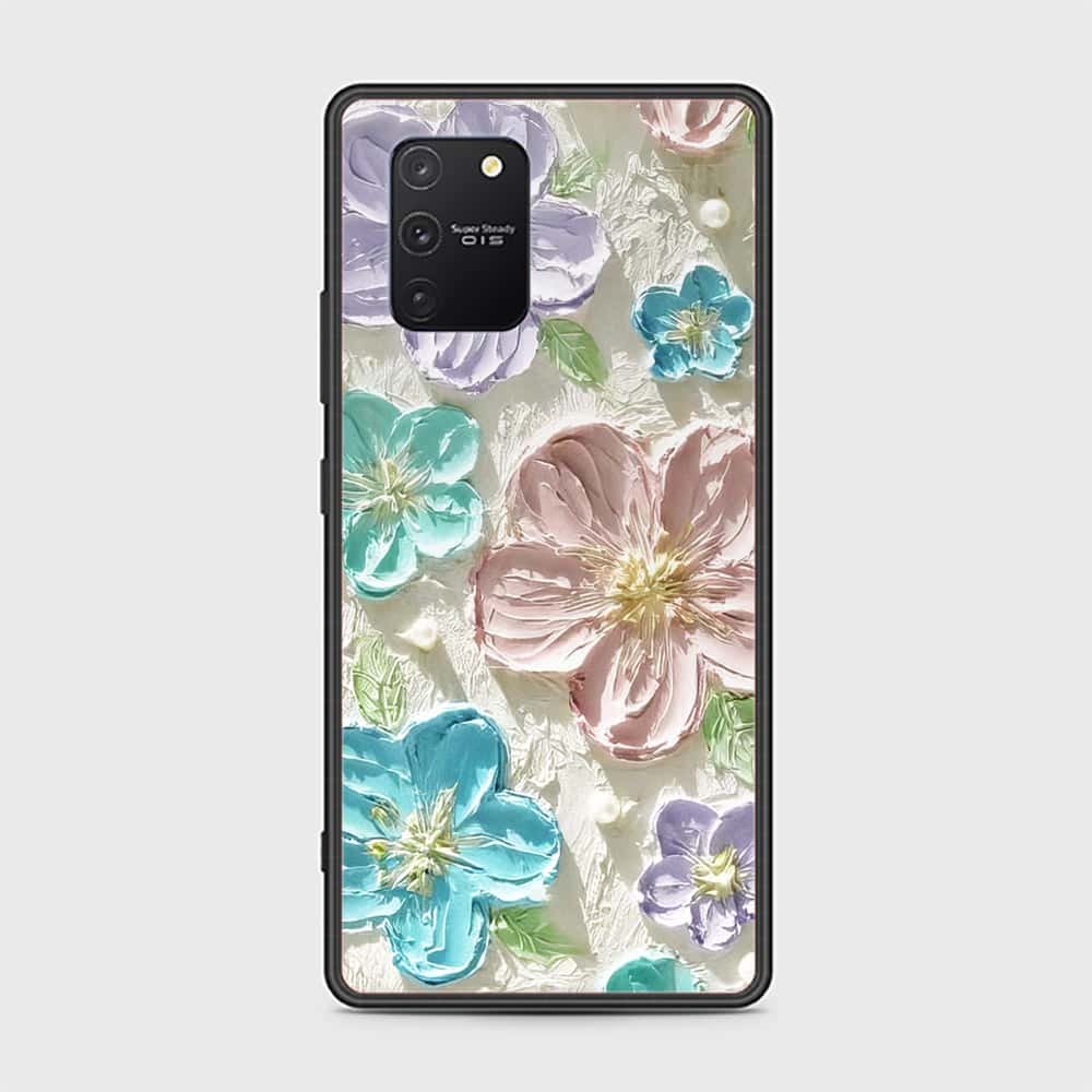 Samsung Galaxy A91 Cover - Floral Series - Design 14 - Blue & Purple - HQ Ultra Shine Premium Infinity Glass Soft Silicon Borders Case