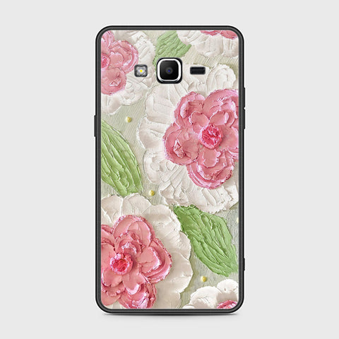 Samsung Galaxy Grand Prime Cover - Floral Series - Design 13 - Offwhite & Green - HQ Ultra Shine Premium Infinity Glass Soft Silicon Borders Case