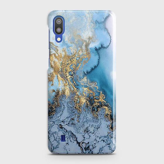 Samsung Galaxy M10 - Trendy Golden & Blue Ocean Marble Printed Hard Case with Life Time Colors Guarantee ( Fast Delivery )