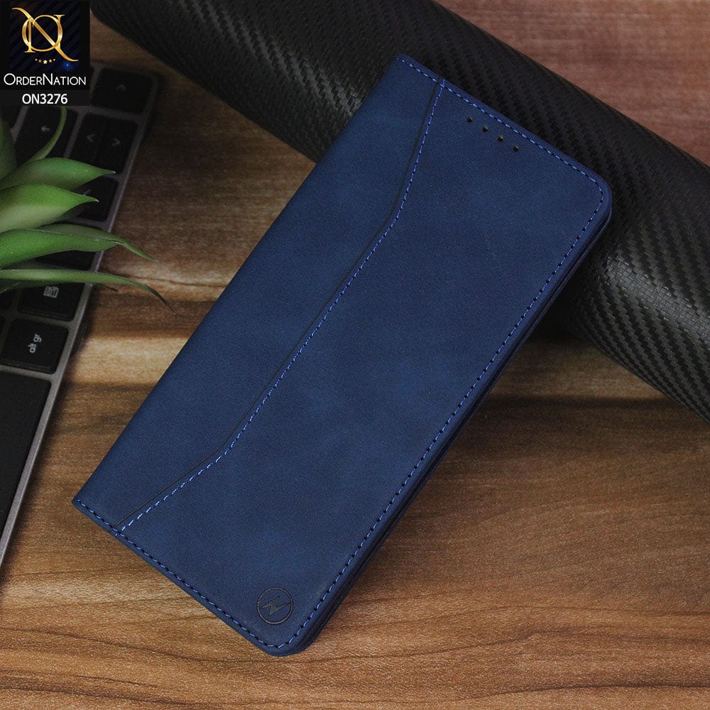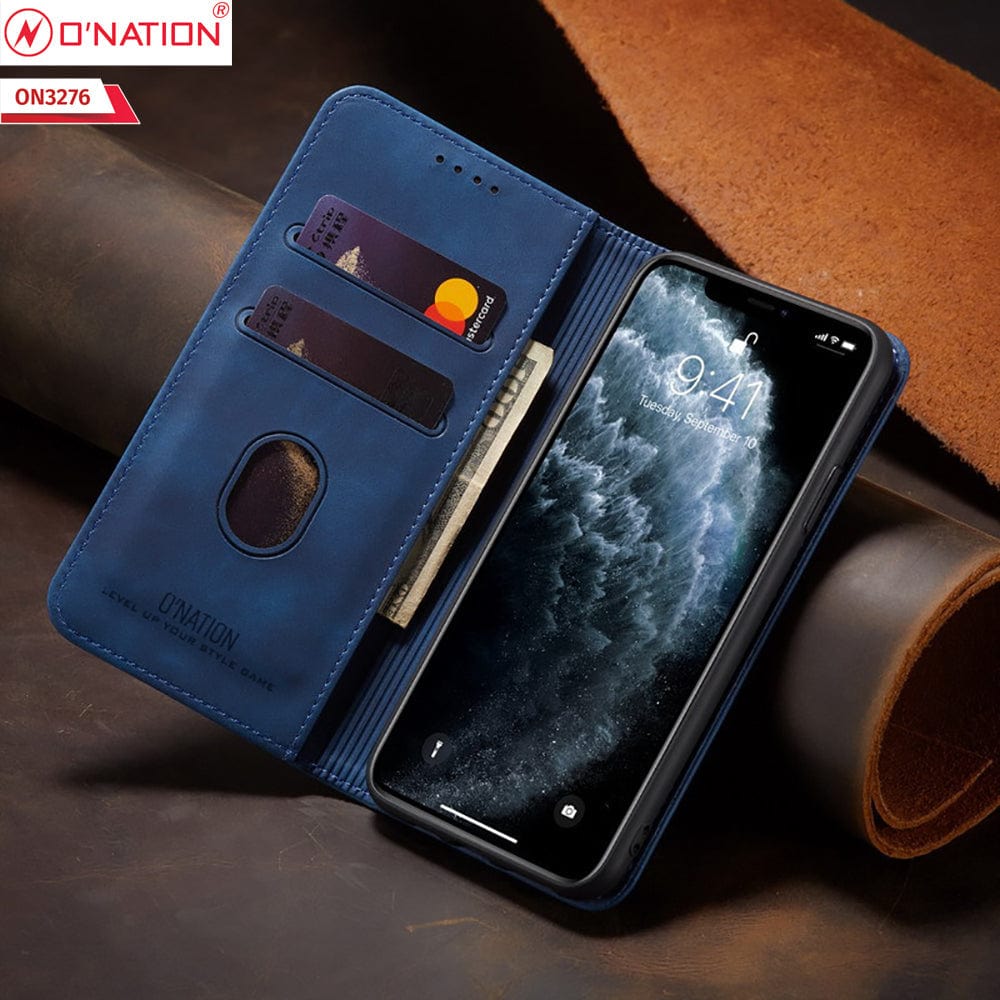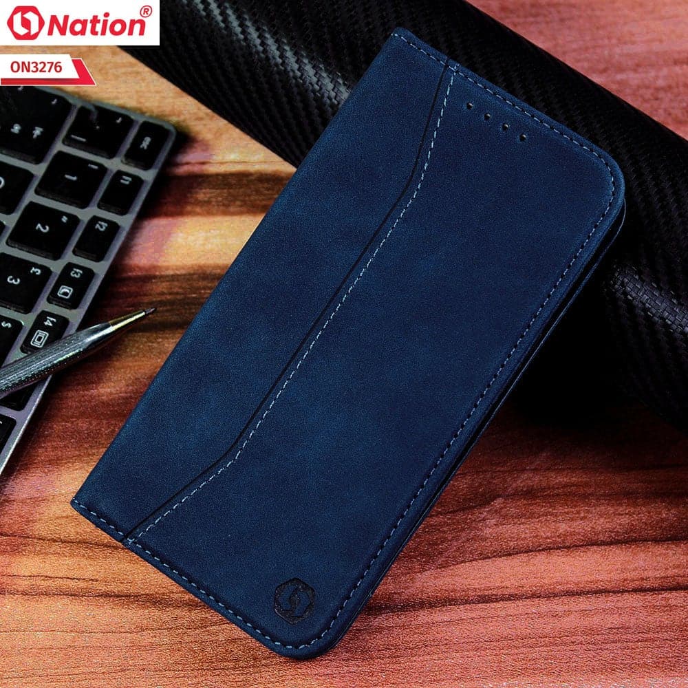 Samsung Galaxy M22 Cover - Blue - ONation Business Flip Series - Premium Magnetic Leather Wallet Flip book Card Slots Soft Case