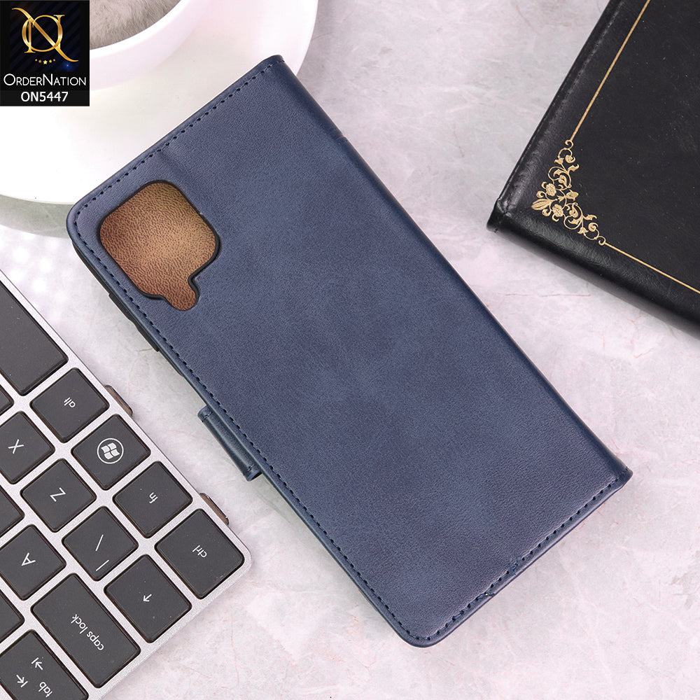 Samsung Galaxy M22 Cover - Blue - Premium Leather Megantic Flip Book Covers With Card Holding Option