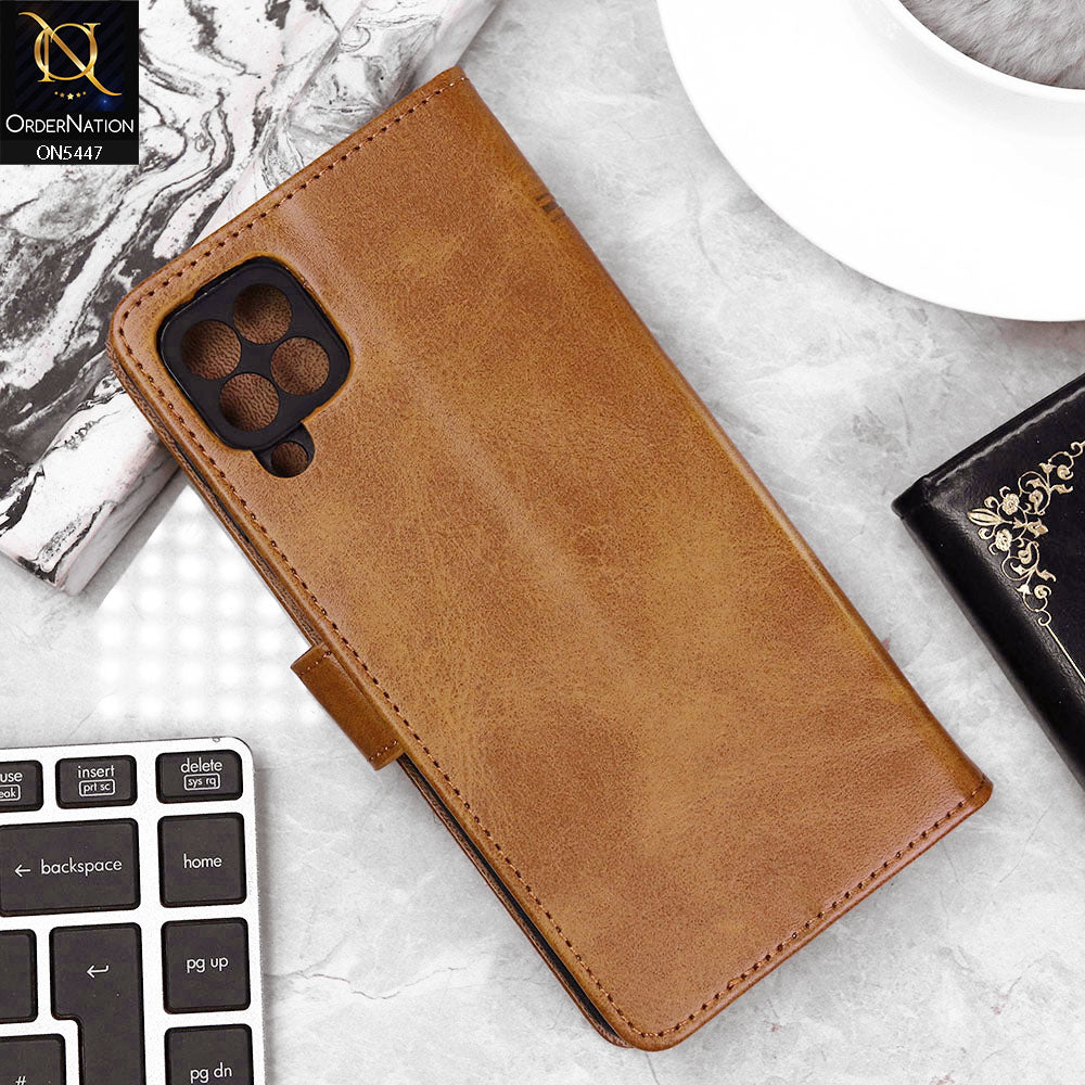 Samsung Galaxy M22 Cover - Light Brown - Premium Leather Megantic Flip Book Covers With Card Holding Option