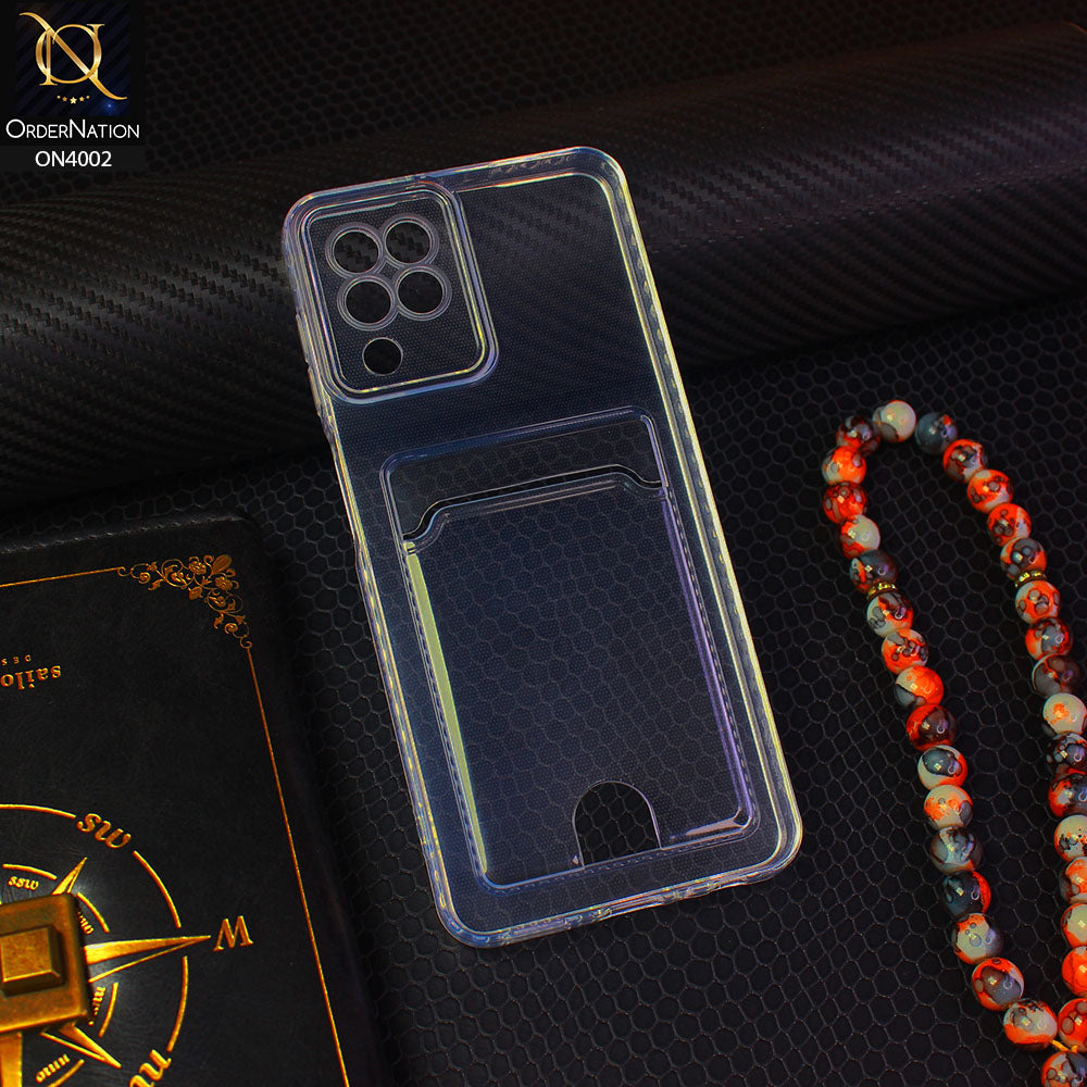 Samsung Galaxy M22 Cover - Transparent - Soft 4D Design Smart Pocket Card Holder Transparent Clear Soft Case