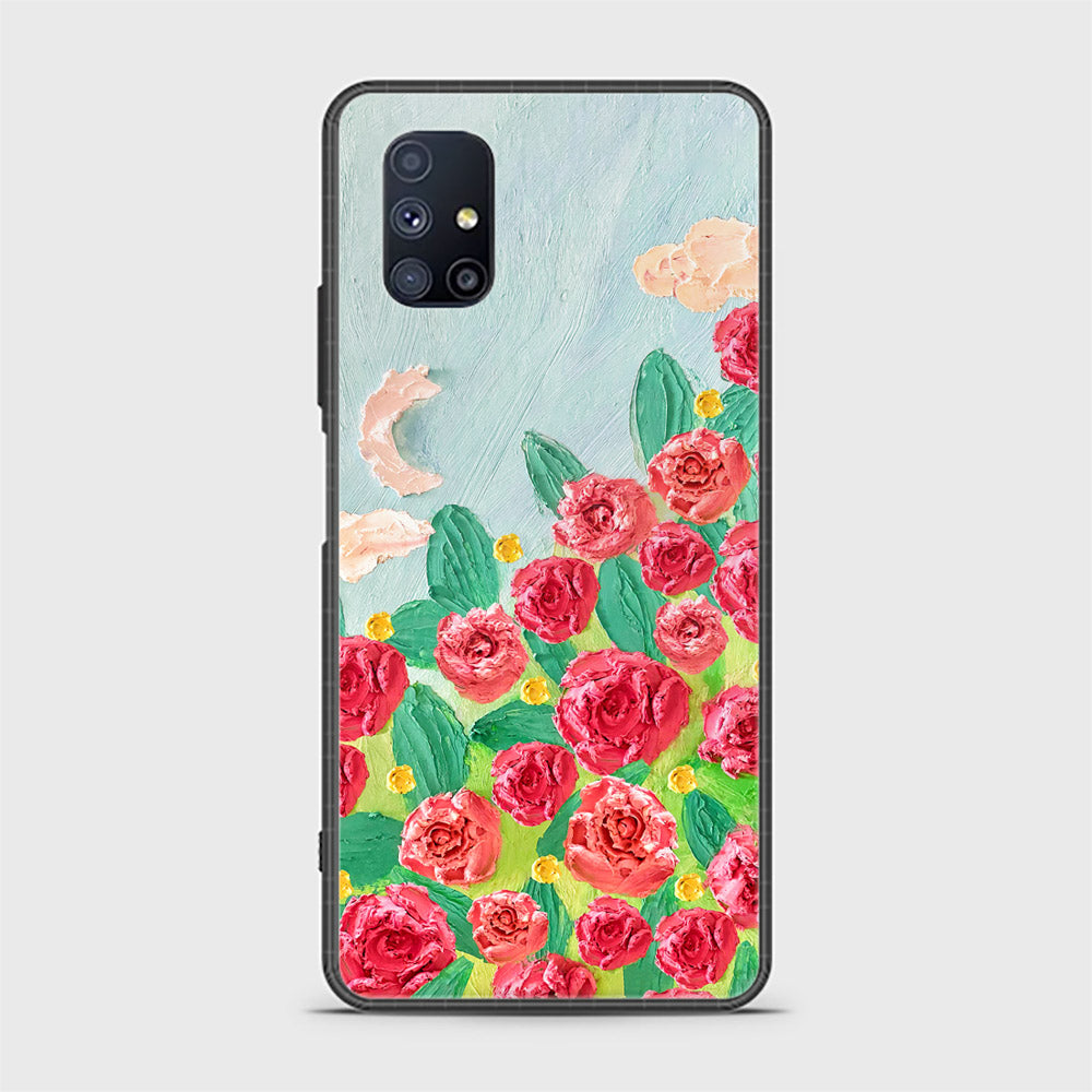Samsung Galaxy M51 Cover - Floral Series - Design 10 - Red & Green - HQ Ultra Shine Premium Infinity Glass Soft Silicon Borders Case