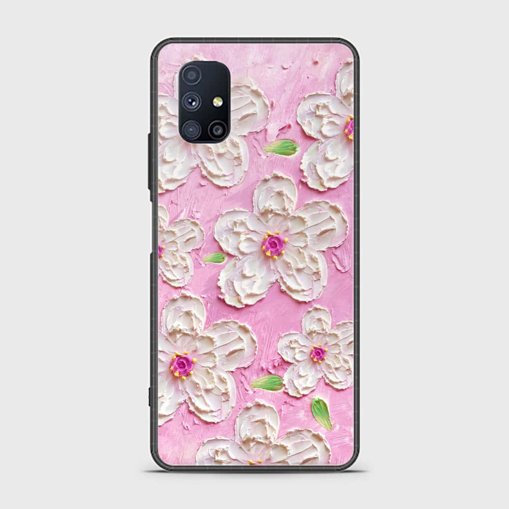 Samsung Galaxy M51 Cover - Floral Series - Design 5 - Pink & White - HQ Ultra Shine Premium Infinity Glass Soft Silicon Borders Case