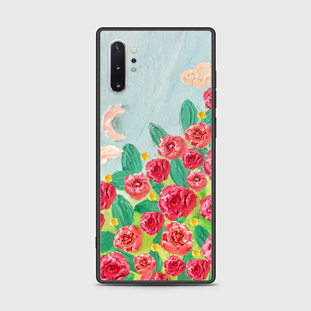 Samsung Galaxy Note 10 Plus Cover - Floral Series - Design 10 - Red & Green - HQ Ultra Shine Premium Infinity Glass Soft Silicon Borders Case