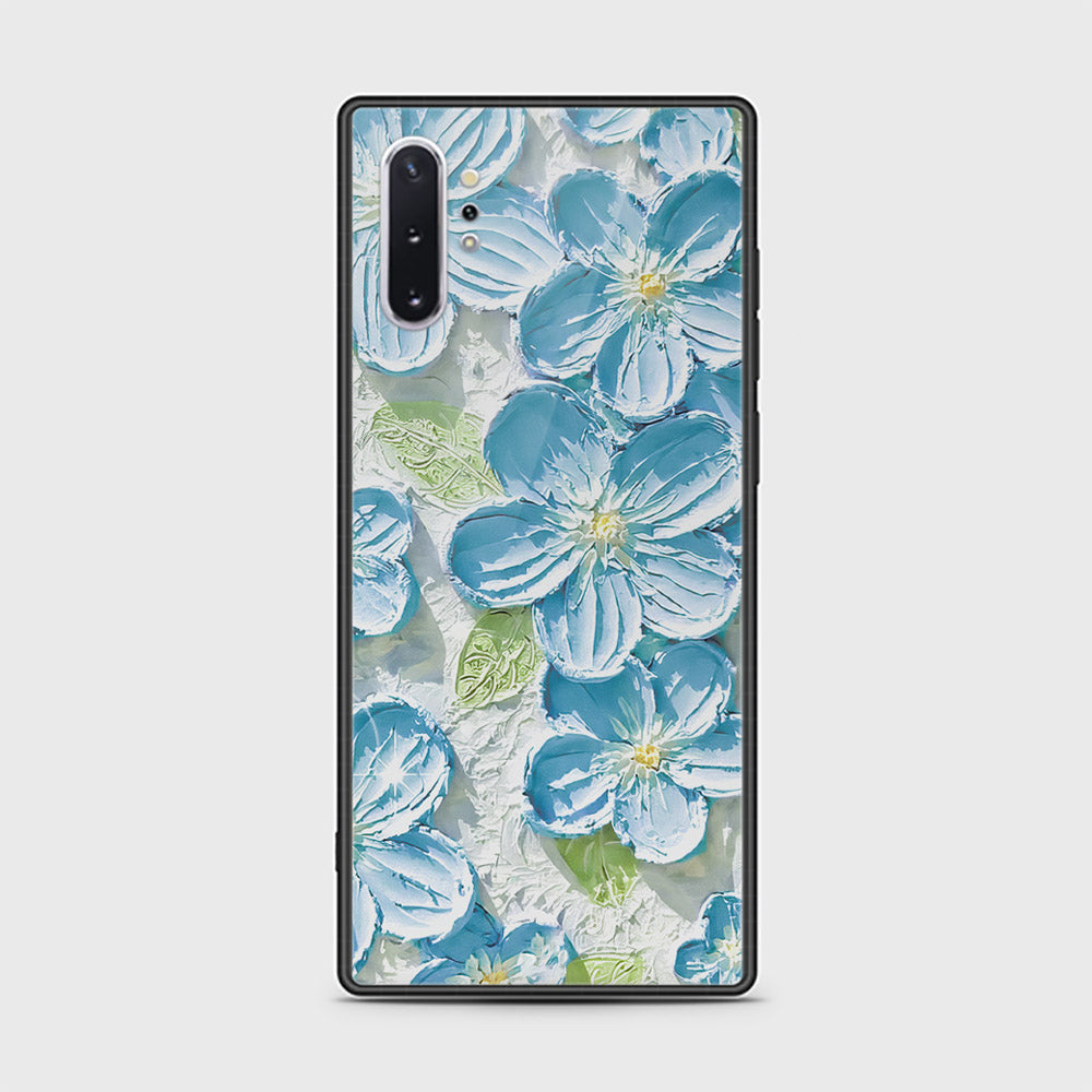 Samsung Galaxy Note 10 Plus Cover - Floral Series - Design 12 - Grey & Green - HQ Ultra Shine Premium Infinity Glass Soft Silicon Borders Case