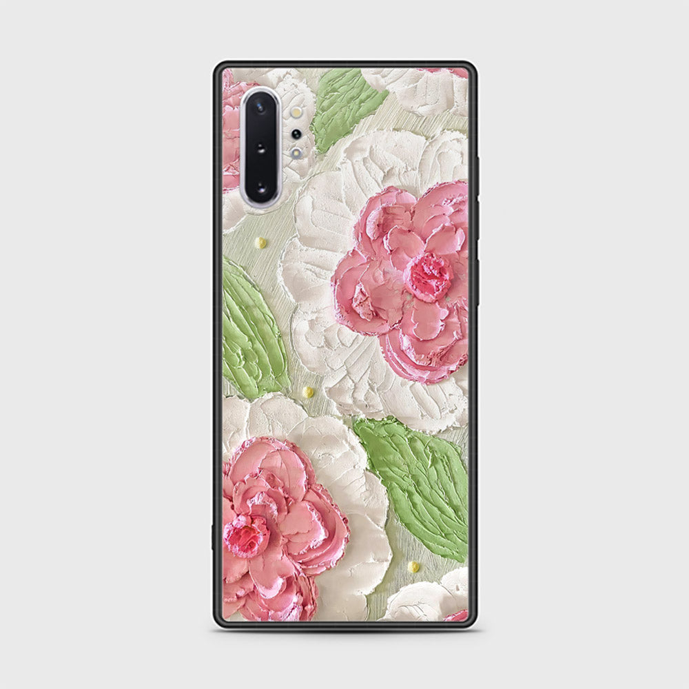 Samsung Galaxy Note 10 Plus Cover - Floral Series - Design 13 - Offwhite & Green - HQ Ultra Shine Premium Infinity Glass Soft Silicon Borders Case