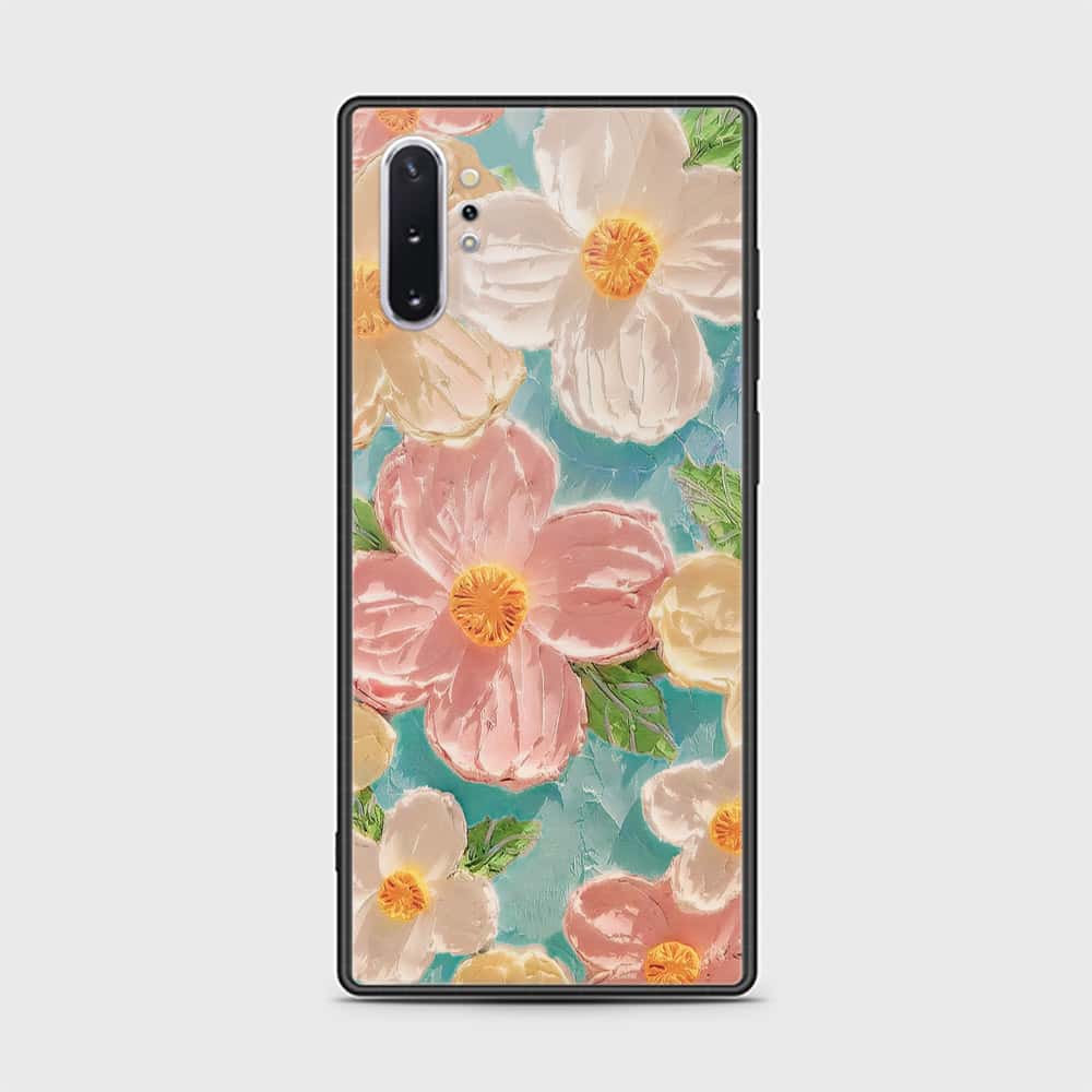 Samsung Galaxy Note 10 Plus Cover - Floral Series - Design 16 - Cyan & Pink - HQ Ultra Shine Premium Infinity Glass Soft Silicon Borders Case