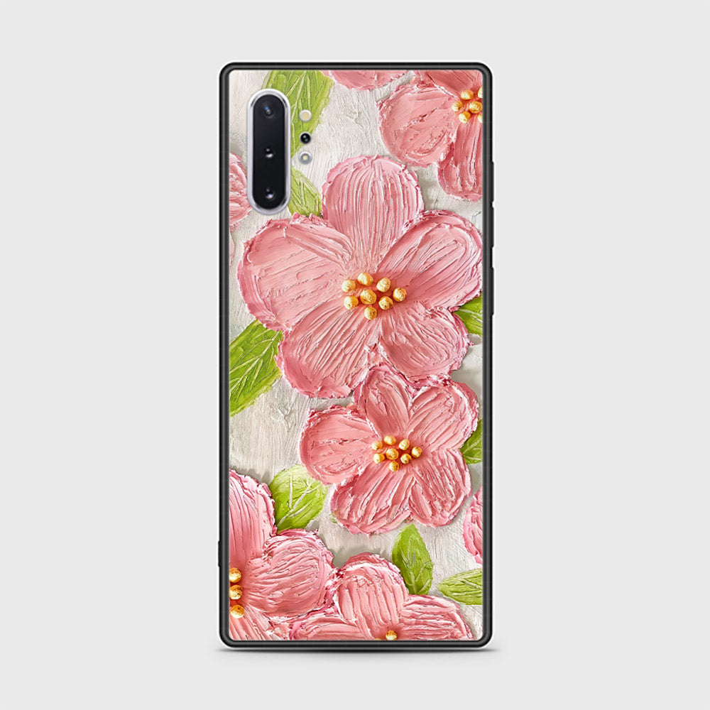 Samsung Galaxy Note 10 Plus Cover - Floral Series - Design 9 - Pink & Green - HQ Ultra Shine Premium Infinity Glass Soft Silicon Borders Case