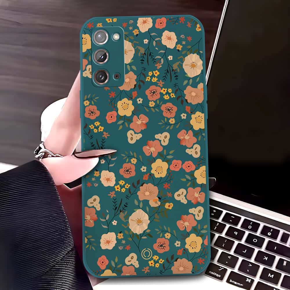 Samsung Galaxy Note 20 Cover - Dark Green - D3 - ONation Floral Series - HQ Liquid Silicone Soft Case