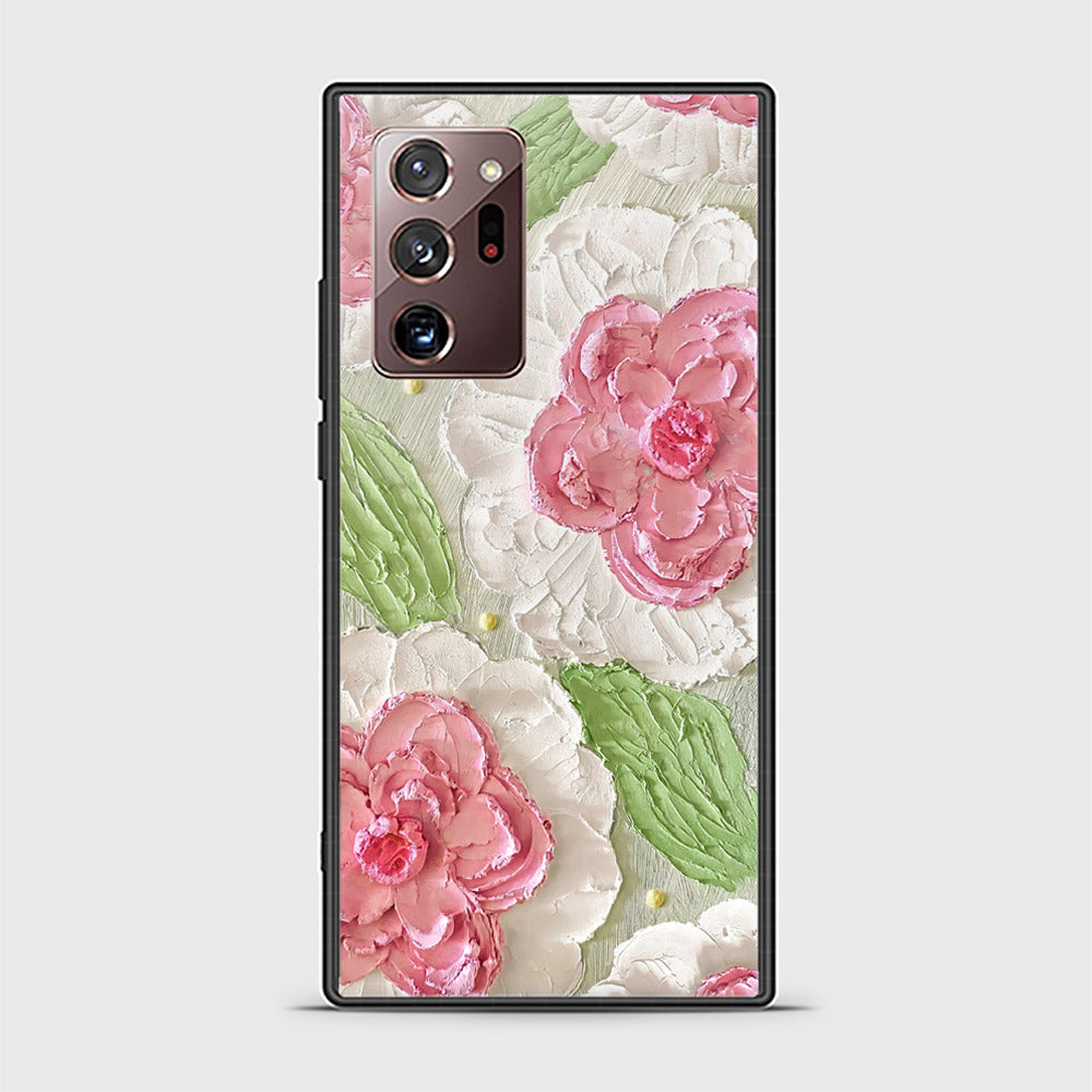 Samsung Galaxy Note 20 Ultra Cover - Floral Series - Design 13 - Offwhite & Green - HQ Ultra Shine Premium Infinity Glass Soft Silicon Borders Case