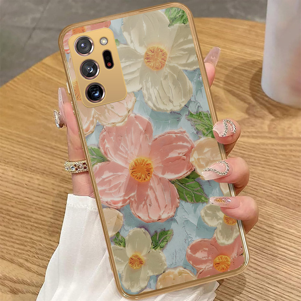 Samsung Galaxy Note 20 Ultra - Floral Series - Design 16 - Cyan & Pink - HQ Premium Shine Durable Golden Electroplate Case