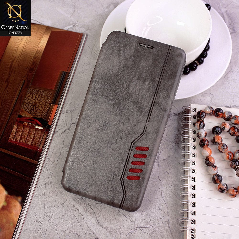 Samsung Galaxy Note 20 Ultra Cover - Gray - All New Premium Megnatic Leather Texture Flip Book Soft Case
