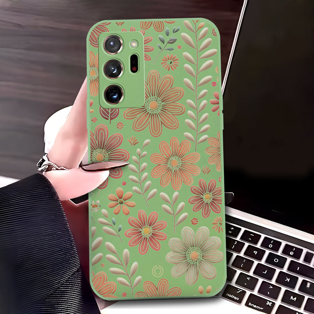 Samsung Galaxy Note 20 Ultra Cover - Light Green - D4 - ONation Floral Series - HQ Liquid Silicone Soft Case