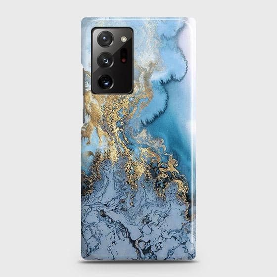 Samsung Galaxy Note 20 Ultra Cover - Trendy Golden & Blue Ocean Marble Printed Hard Case with Life Time Colors Guarante ( Fast Delivery )