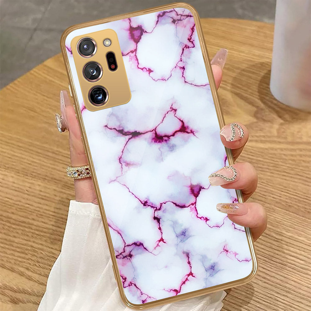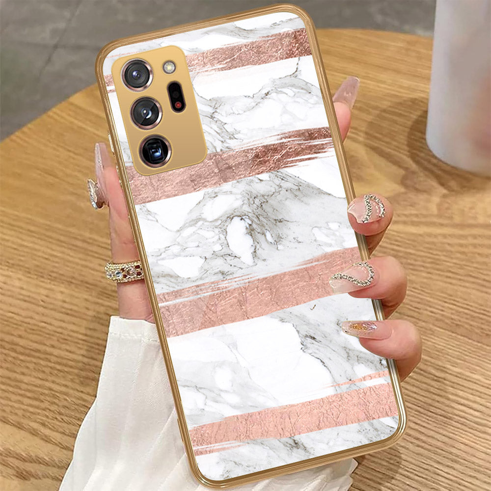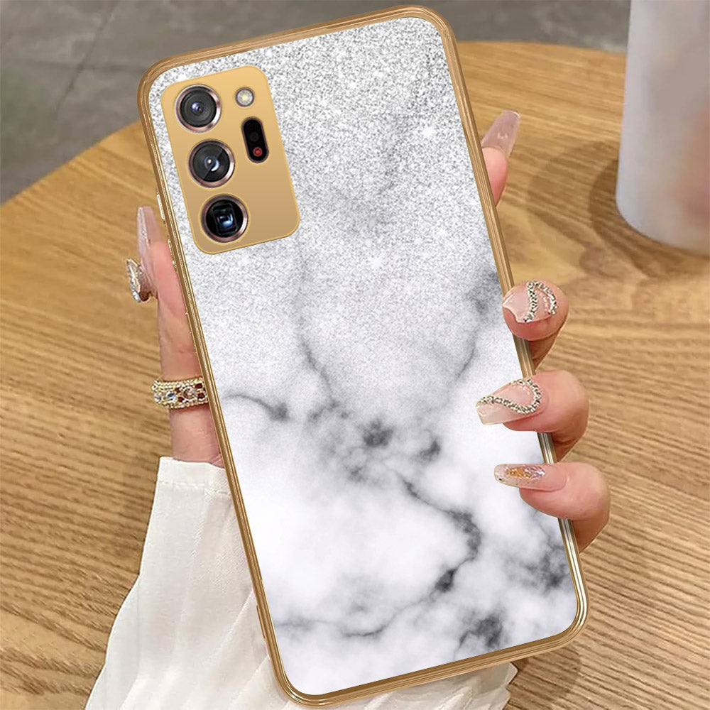 Samsung Galaxy Note 20 Ultra - White Marble Series - HQ Premium Shine Durable Golden Electroplate Case