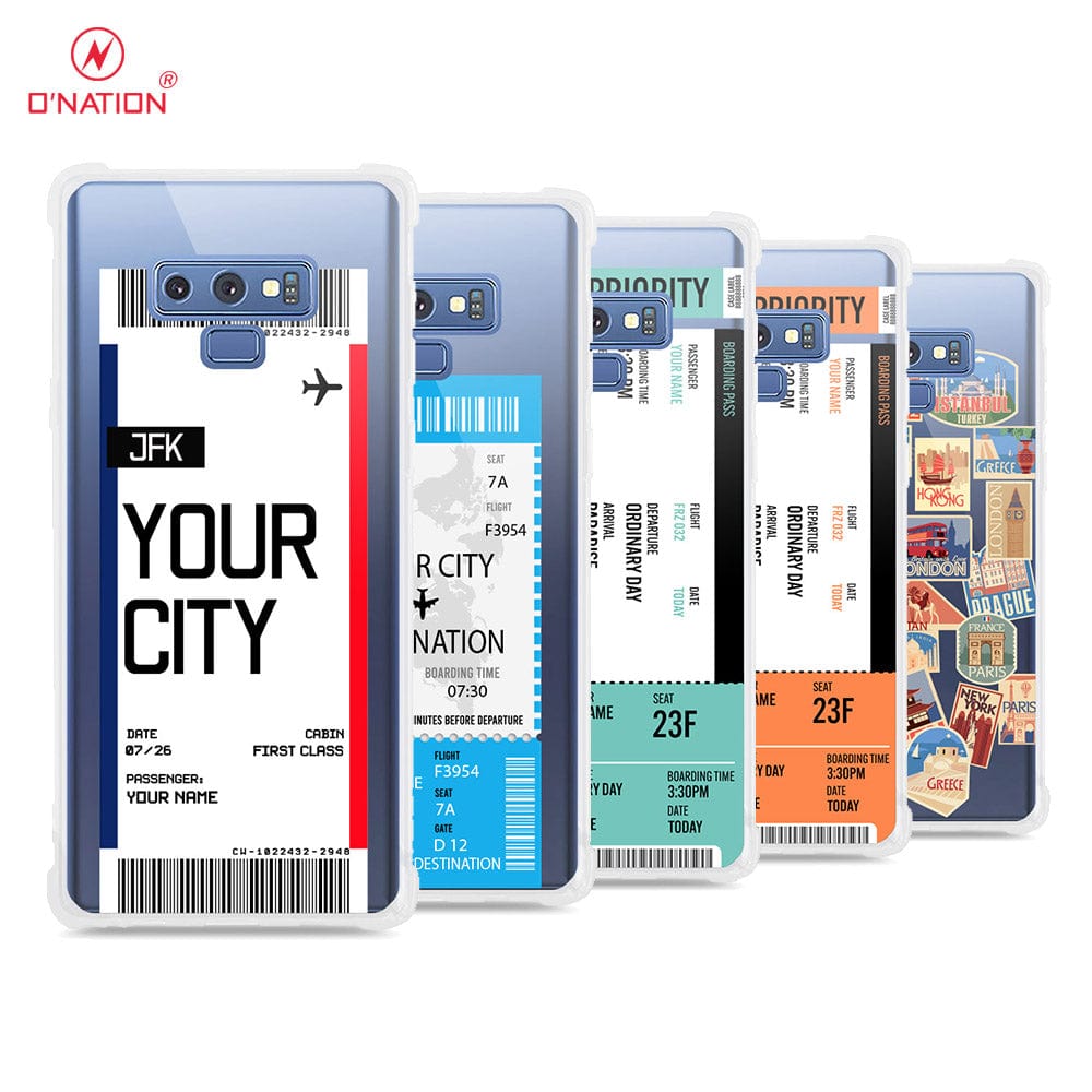 Samsung Galaxy Note 9 Cover - Personalised Boarding Pass Ticket Series - 5 Designs - Clear Phone Case - Soft Silicon Borders