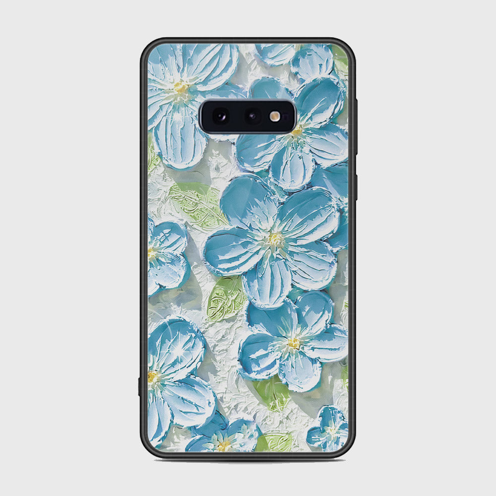 Samsung Galaxy S10e Cover - Floral Series - Design 12 - Grey & Green - HQ Ultra Shine Premium Infinity Glass Soft Silicon Borders Case